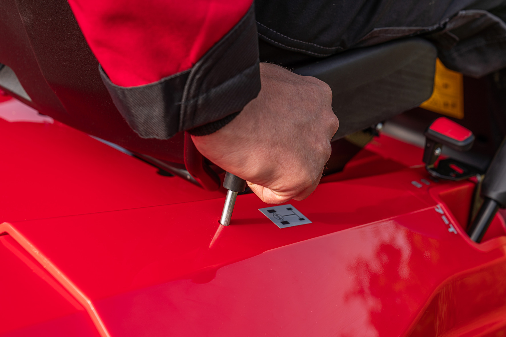 Traktor został wyposażony w duże koła rolnicze (20″ z tyłu) oraz blokadę mechanizmu różnicowego, co zapewnia bardzo dobrą przyczepność nawet na mokrym lub nierównym podłożu. Dzięki temu sprzęt świetnie radzi sobie w sadach, na łąkach oraz na terenach o zróżnicowanej nawierzchni.